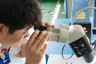 和傳統(tǒng)的機(jī)械加工相比,聚焦后的激光就像極細(xì)的無(wú)形刀具一般,將物體局部區(qū)域的表面 逐點(diǎn)逐點(diǎn)的“燒”掉,它的特點(diǎn)在于不與工件接觸,不產(chǎn)生機(jī)械擠壓或機(jī)械應(yīng)力,因此 不會(huì)改變被加工物品的物理性能;由于激光聚焦后的尺寸很小,熱影響區(qū)域小,加工 精細(xì),因此,可以完成一些常規(guī)方法無(wú)法實(shí)現(xiàn)的工藝。